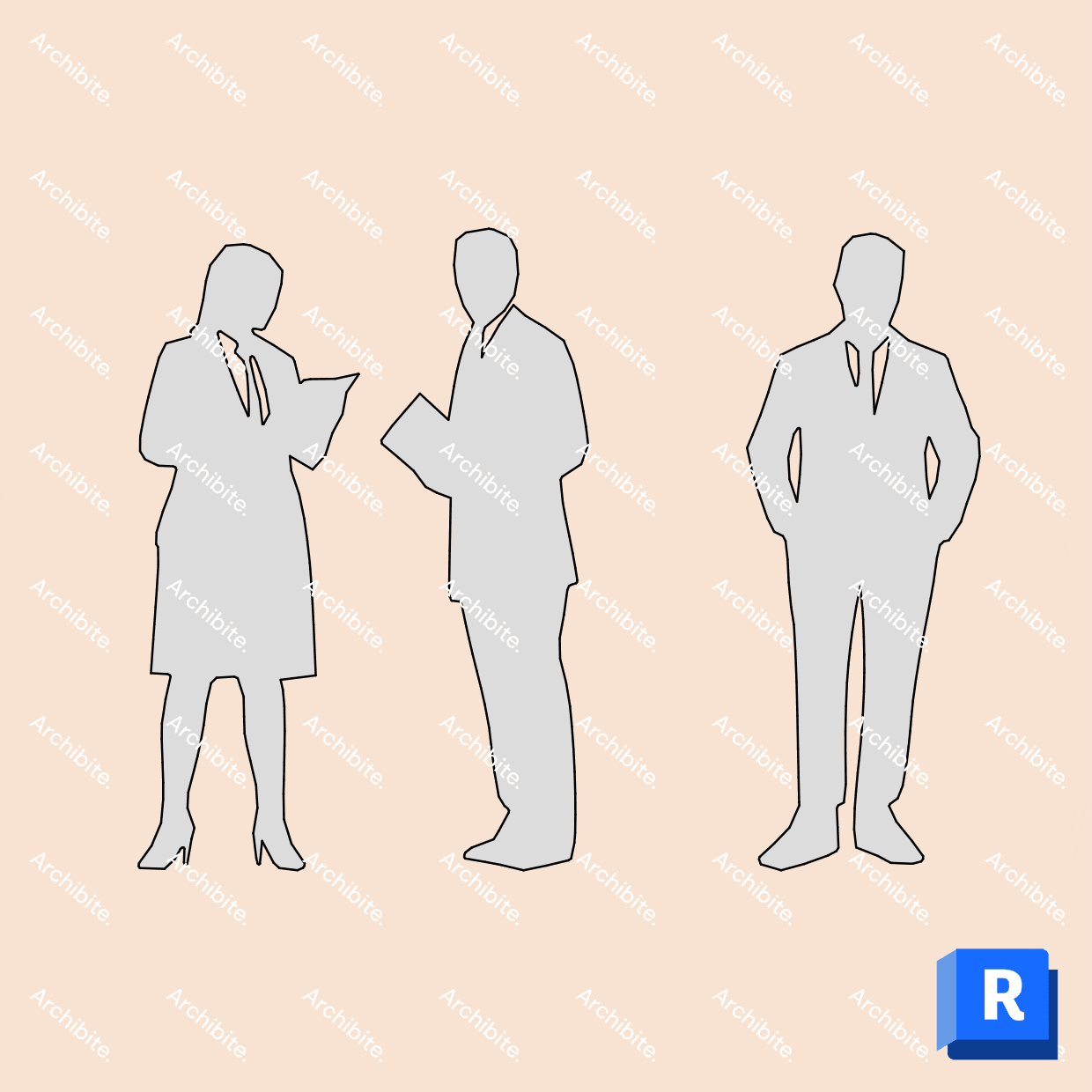 One single Revit detail item that puts 16 different 2D people into your designs! The people are in scale and immediately ready to use. Skip post-processing your images in other programs and utilize these incredibly easy-to-use Revit Detail Items in your Revit workflow to spice up your designs. Great to use in sections, elevations and detail drawings!