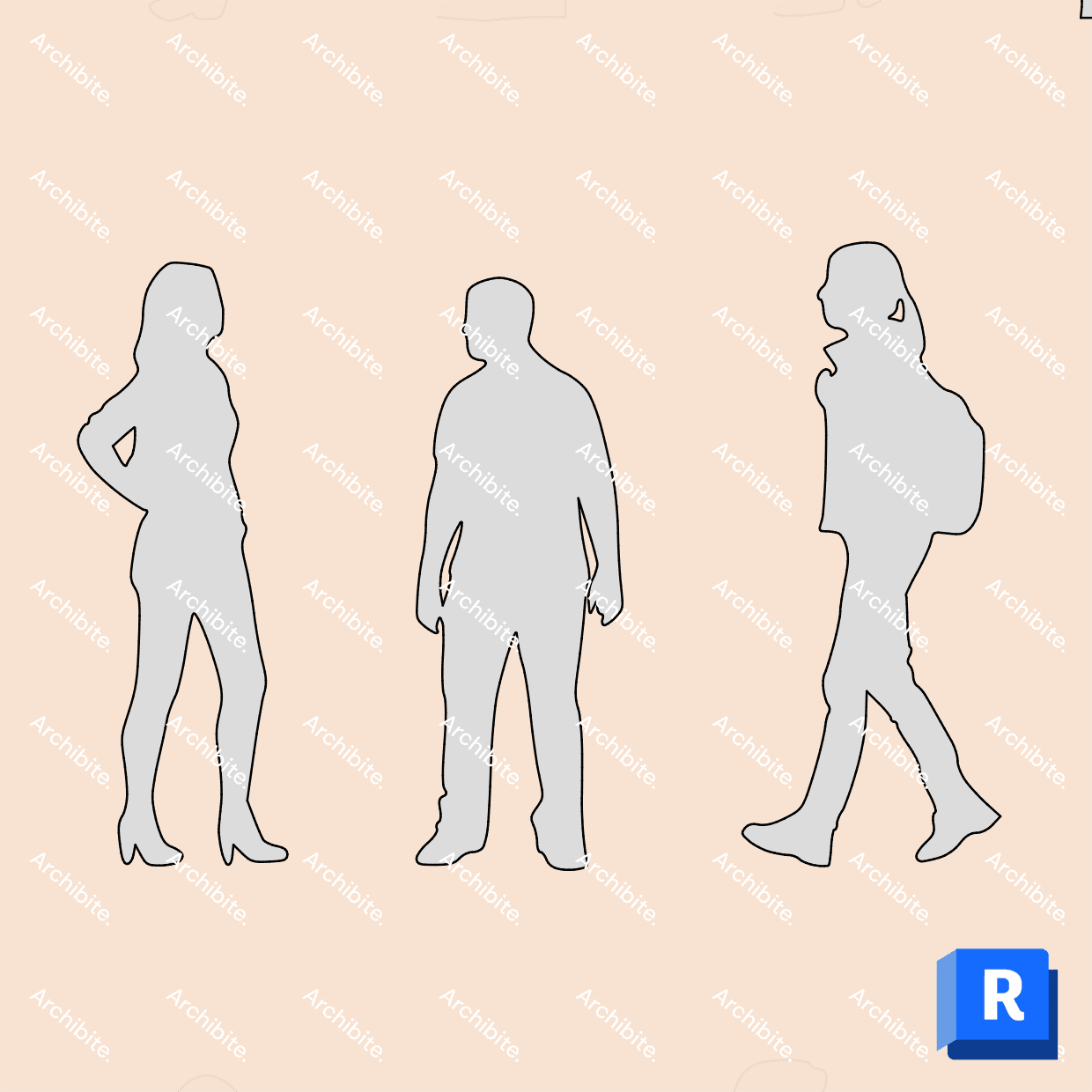 One single Revit detail item that puts 16 different 2D people into your designs! The people are in scale and immediately ready to use. Skip post-processing your images in other programs and utilize these incredibly easy-to-use Revit Detail Items in your Revit workflow to spice up your designs. Great to use in sections, elevations and detail drawings!