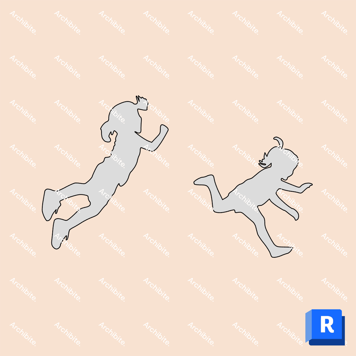 The product contains just one rvt family file, where you can select which individual 2D person you wish to use with just a click of a button.