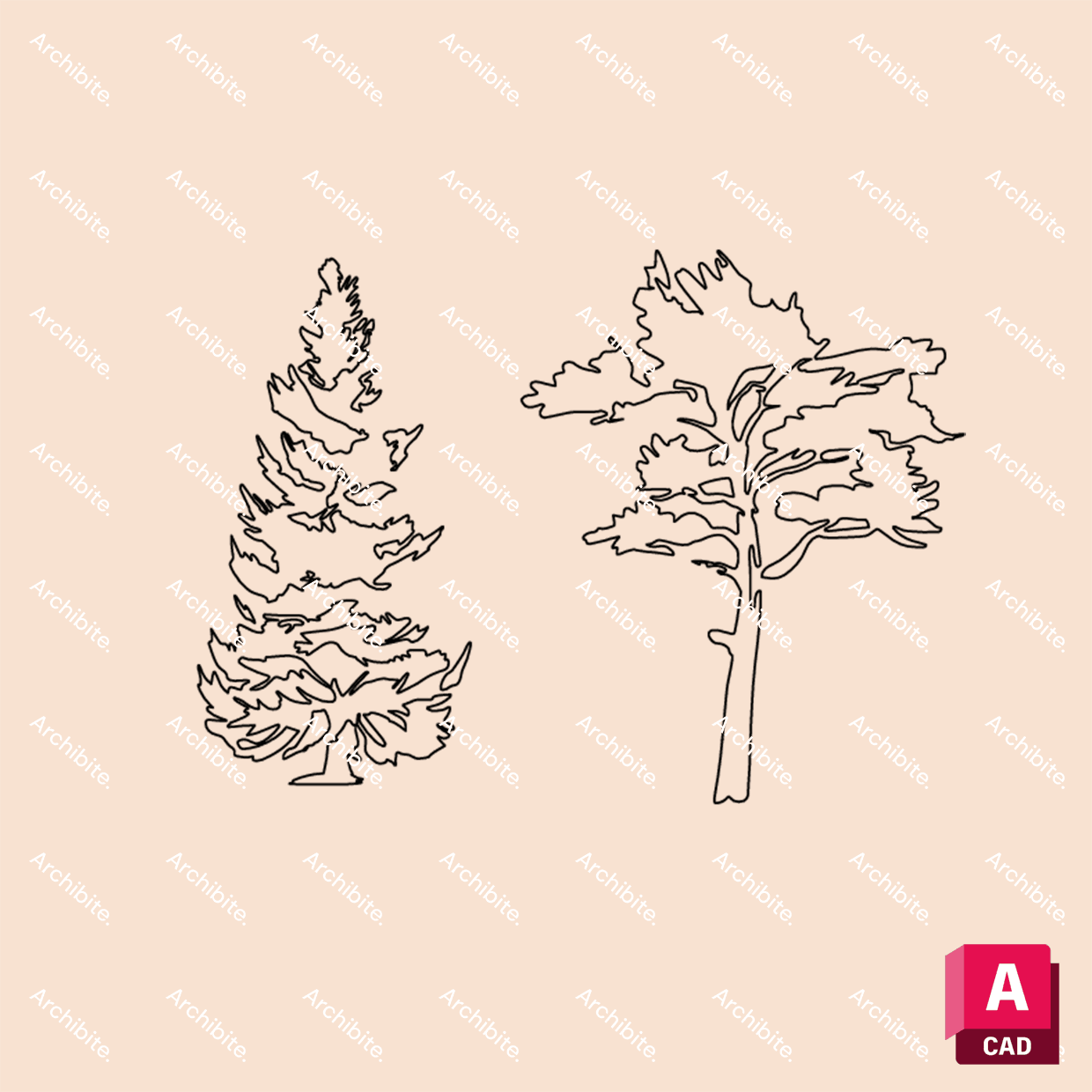 Plenty of different DWG trees for your elevations, sections, detail drawings etc. These DWG blocks are incredibly high quality and 100% scalable to any size.