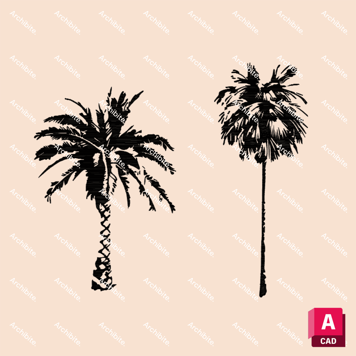 The product contains one dwg. file with separate hatched blocks of each individual tree for easy use. It contains both hatch blocks and polyline blocks to use in different style drawings.