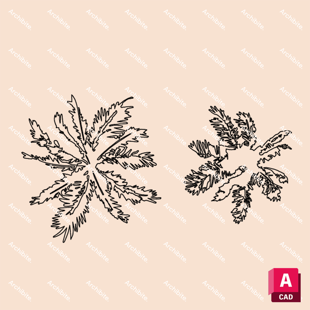 The product contains one dwg. file with separate hatched blocks of each individual tree for easy use. It contains both hatch blocks and polyline blocks to use in different style drawings.
