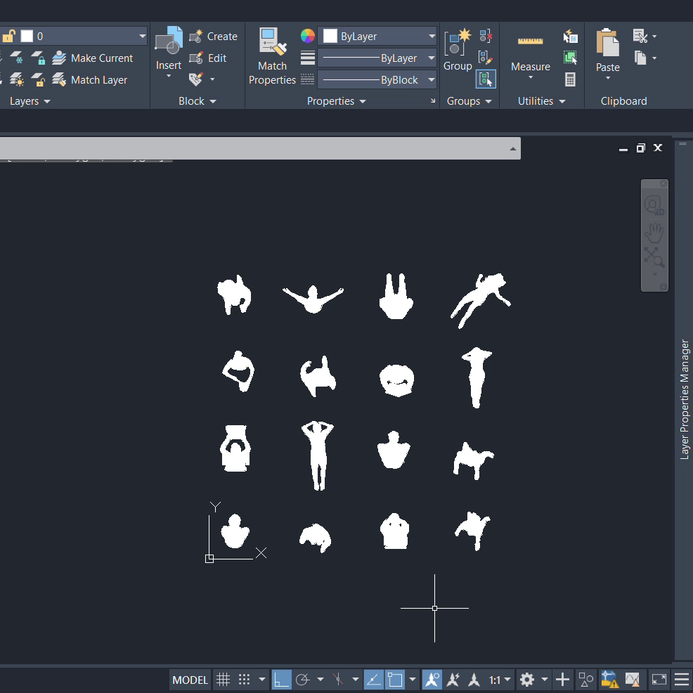 The product contains one dwg file with both separate hatched blocks, and silhouettes of each individual person for easy use.