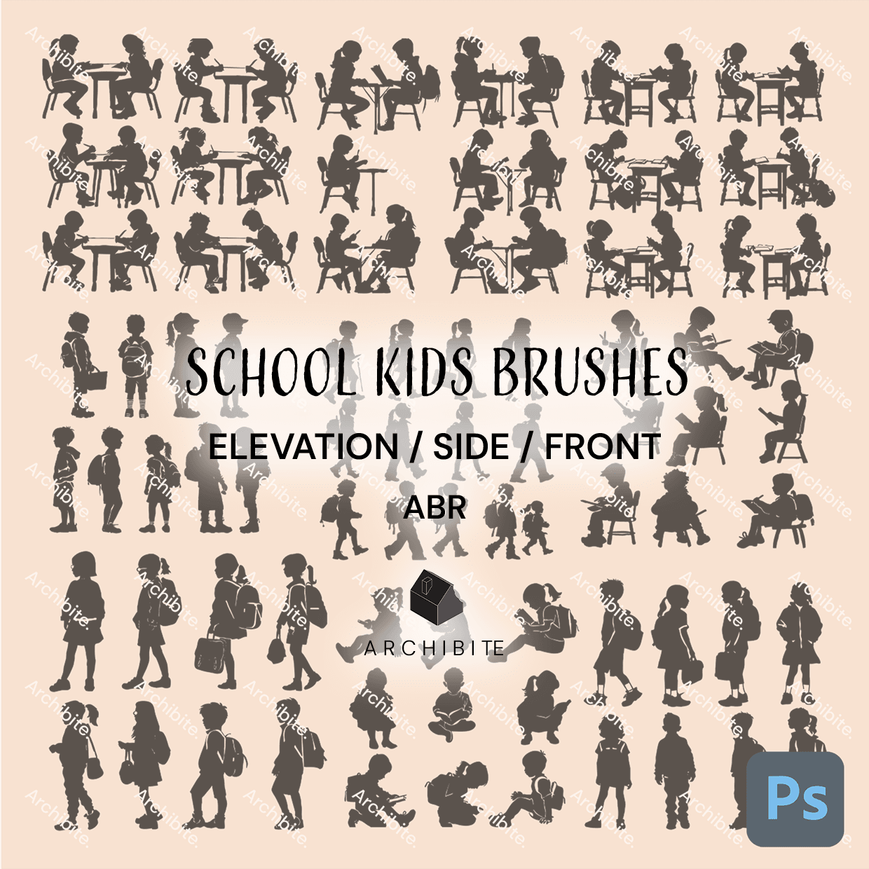 Take your elevations, sections and detail drawings to the next level with this set of different brushes! The brushes are incredibly high quality and scalable, and features plenty of different types of people for all your visualization needs.