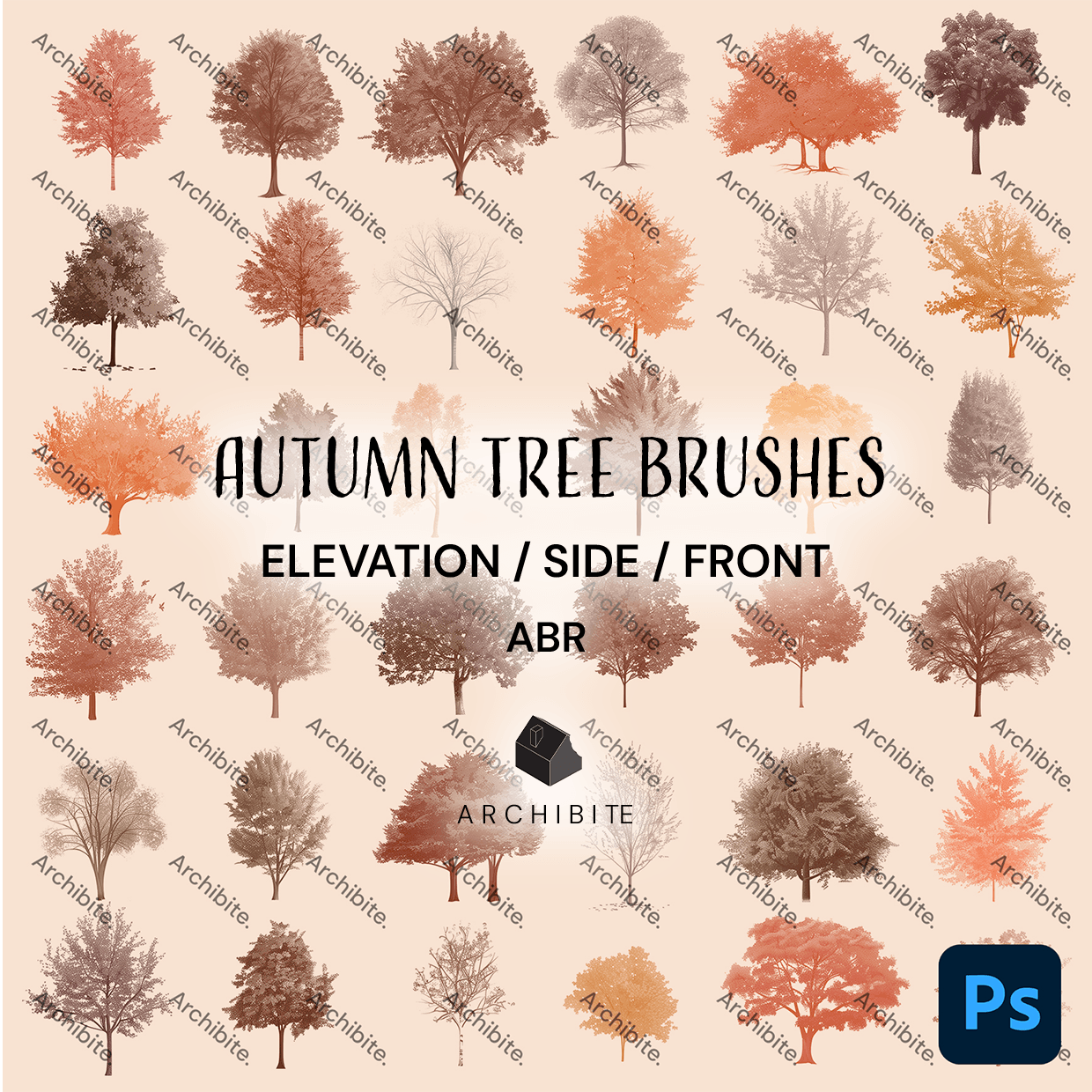 Take your masterplans, elevations, sections etc. to the next level with this set of Photoshop brushes! The trees are incredibly high quality and easily scalable, and features plenty of different types of trees from all seasons and vegetation typologies.