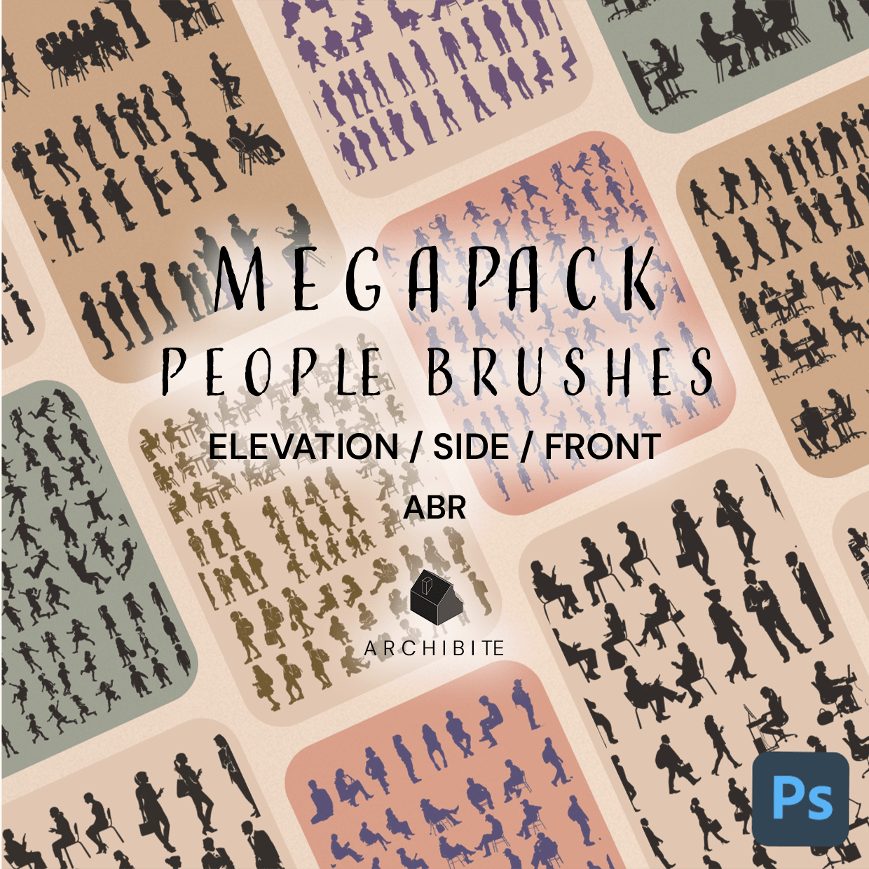 Take your architectural drawings to the next level with these sharp, crisp, and fully scalable casual people brushes for Photoshop! These high-quality brushes seamlessly integrate into all your elevations, sections and stylized architectural drawings!