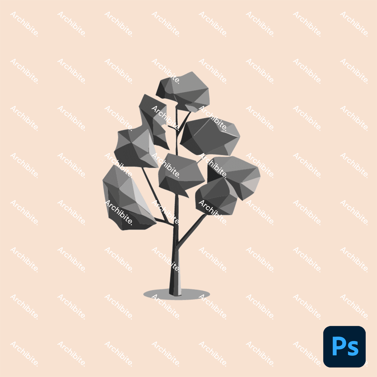 Take your architectural drawings to the next level with these sharp, crisp, and fully scalable elevation side view polygon tree brushes for Photoshop! These high-quality brushes seamlessly integrate into your elevations, sections, and even renderings.