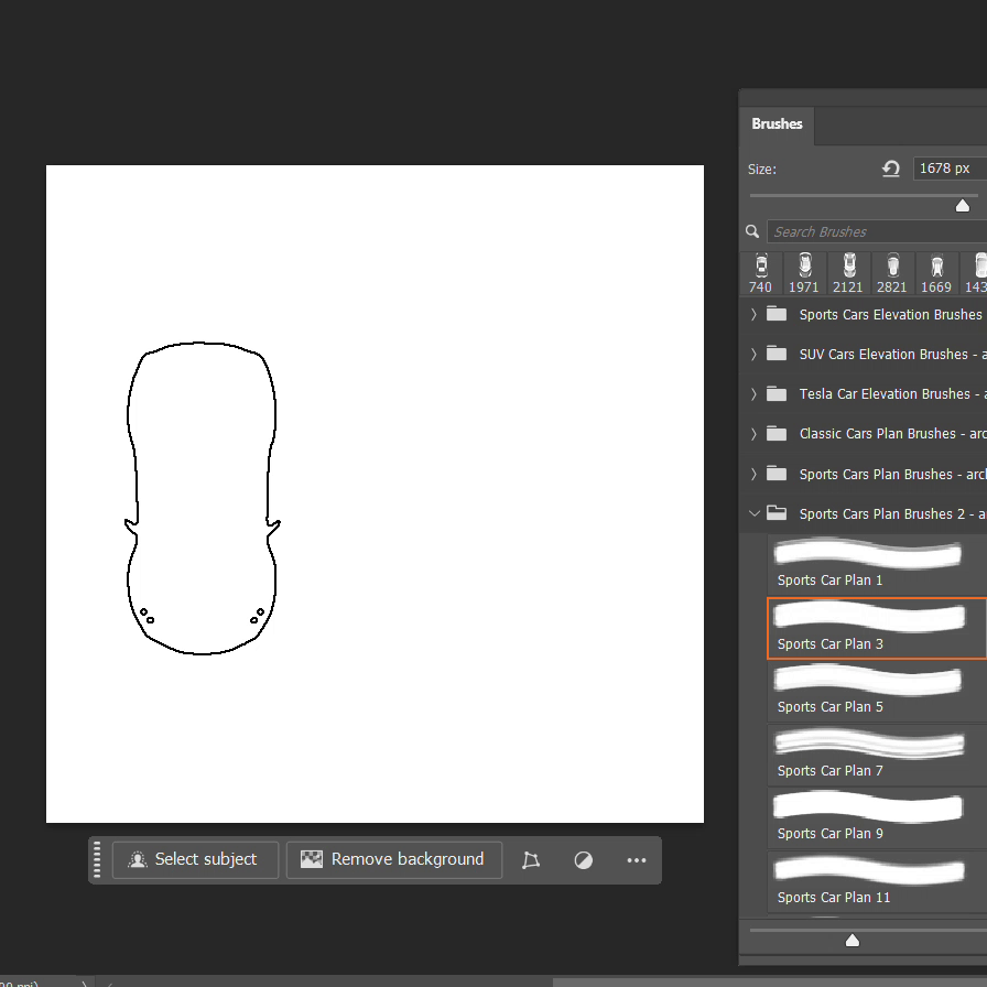 Take your architectural drawings to the next level with these sharp, crisp, and fully scalable top view sports & luxury car brushes for Photoshop! These high-quality brushes seamlessly integrate into your floor plans, master plans, and even renderings.