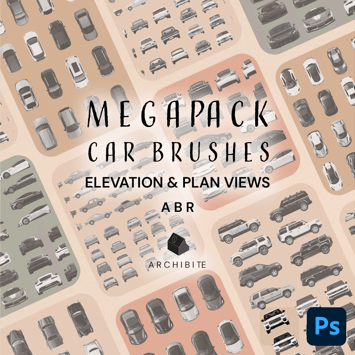 A set of incredibly high quality, sharp, crisp and scalable elevation / section / side / front / back view Tesla car brushes for all your architectural drawings! Place these brushes in your elevations, sections, detail drawings and even architectural renderings!