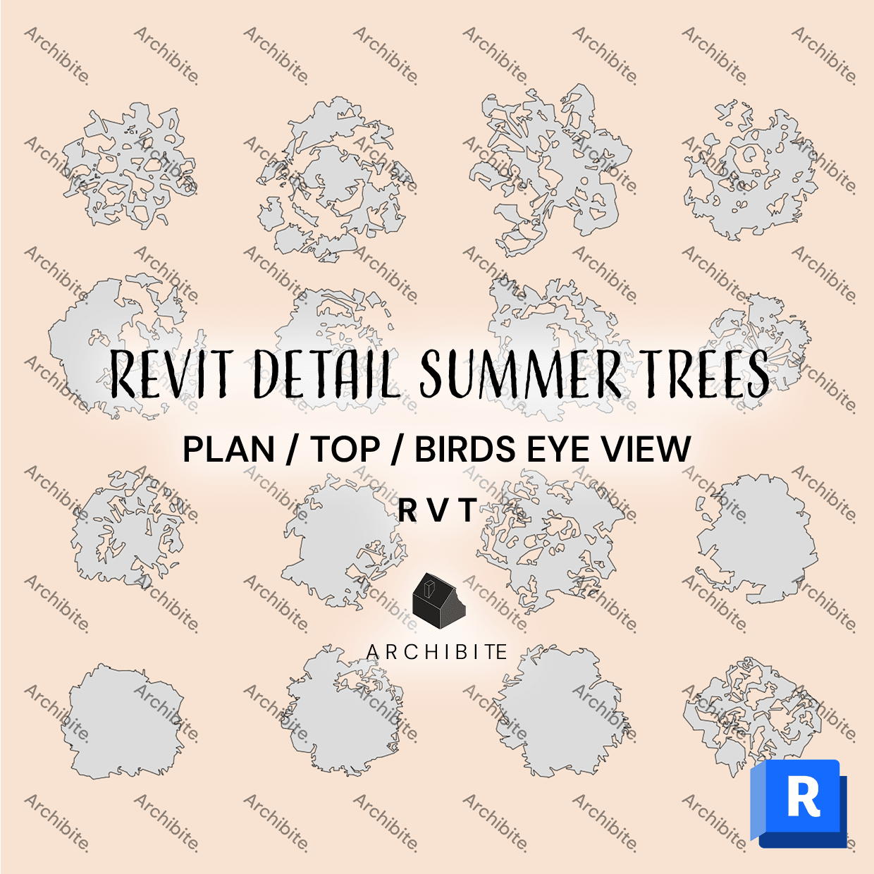 Take your plans, master plans, elevations and sections to the next level with this set of Revit Detail Items! The trees are very high quality and feature plenty of different types of trees from all seasons, sides, sizes and vegetation typologies.