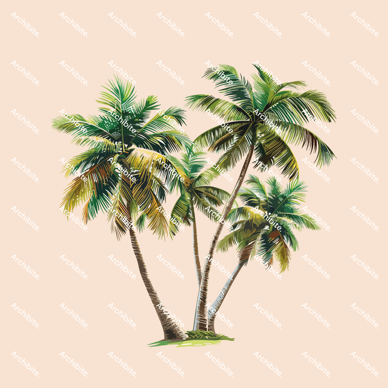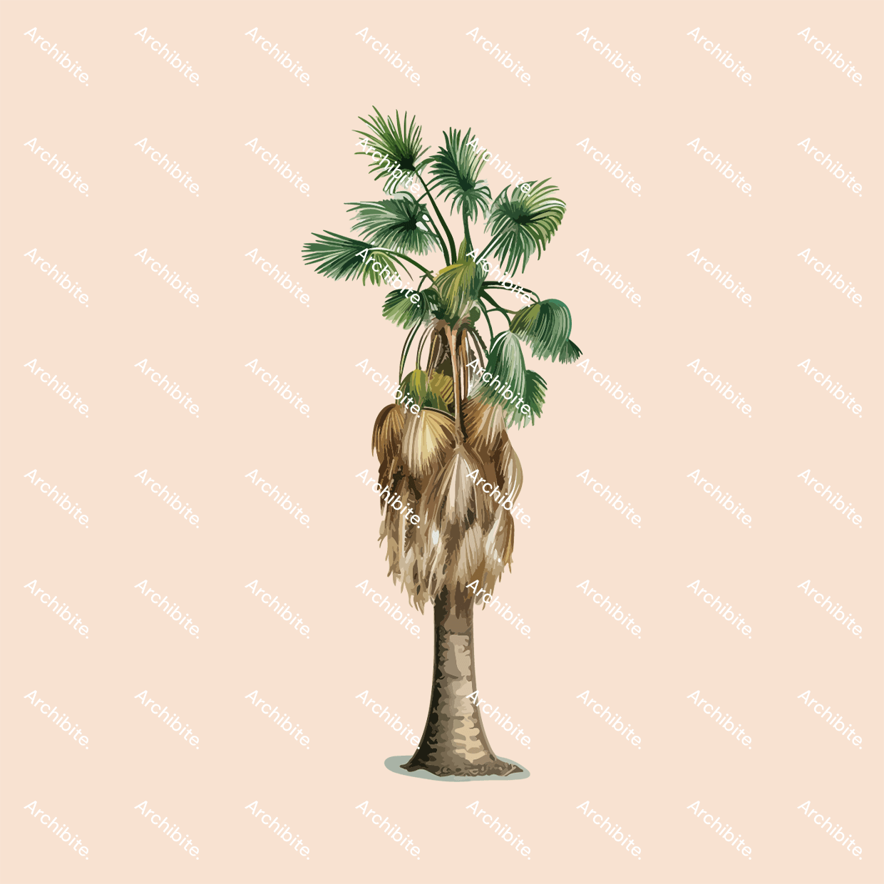 Beautiful vectorized elevation view palm trees for architectural drawings. Take your elevation to the next level with this set of different palm trees! The trees are incredibly high quality and scalable, and features plenty of different types of palm trees.