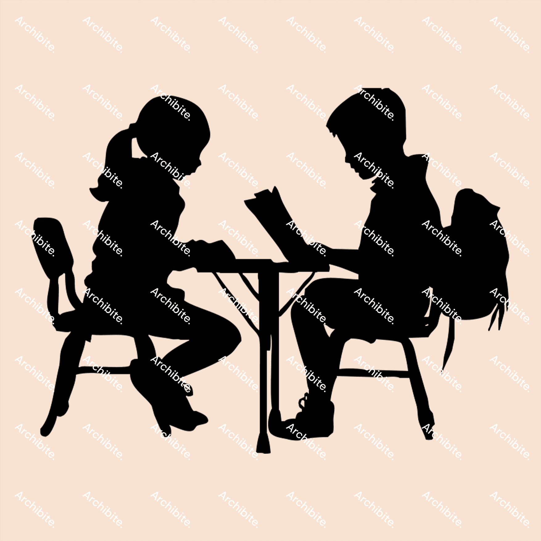 Incredibly high quality, sharp, crisp and 100% scalable silhouette school kids for all your architectural drawings! The images are vectorized, so they are possible to be scaled infinitely to any size you need! Their visual style is suitable for most architectural drawings, so place them in your elevations, sections, detail drawings or even renderings!